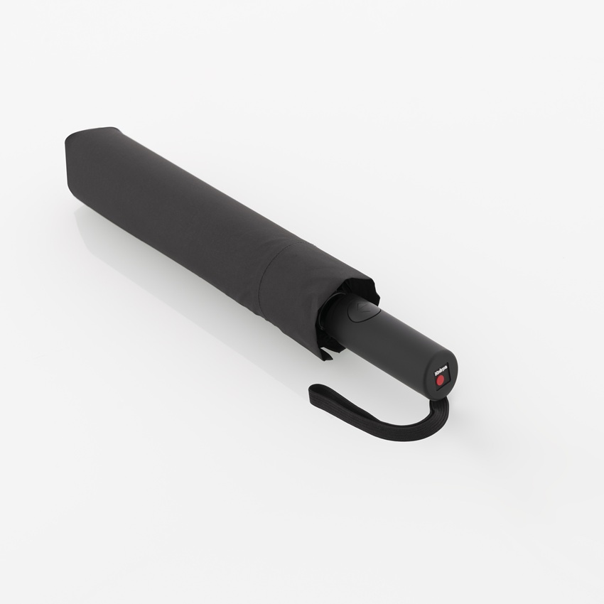 Duomatic sistema leidžia skėtį atidaryti ir uždaryti vienu mygtuko paspaudimu – tai patogu ir greita, ypač kai staiga užklumpa lietus.